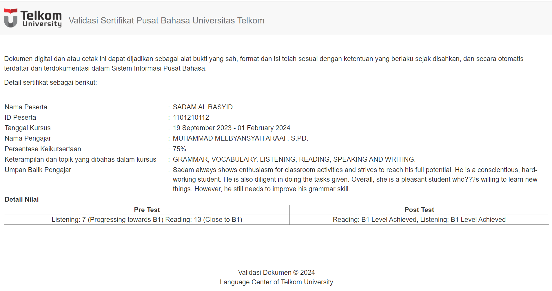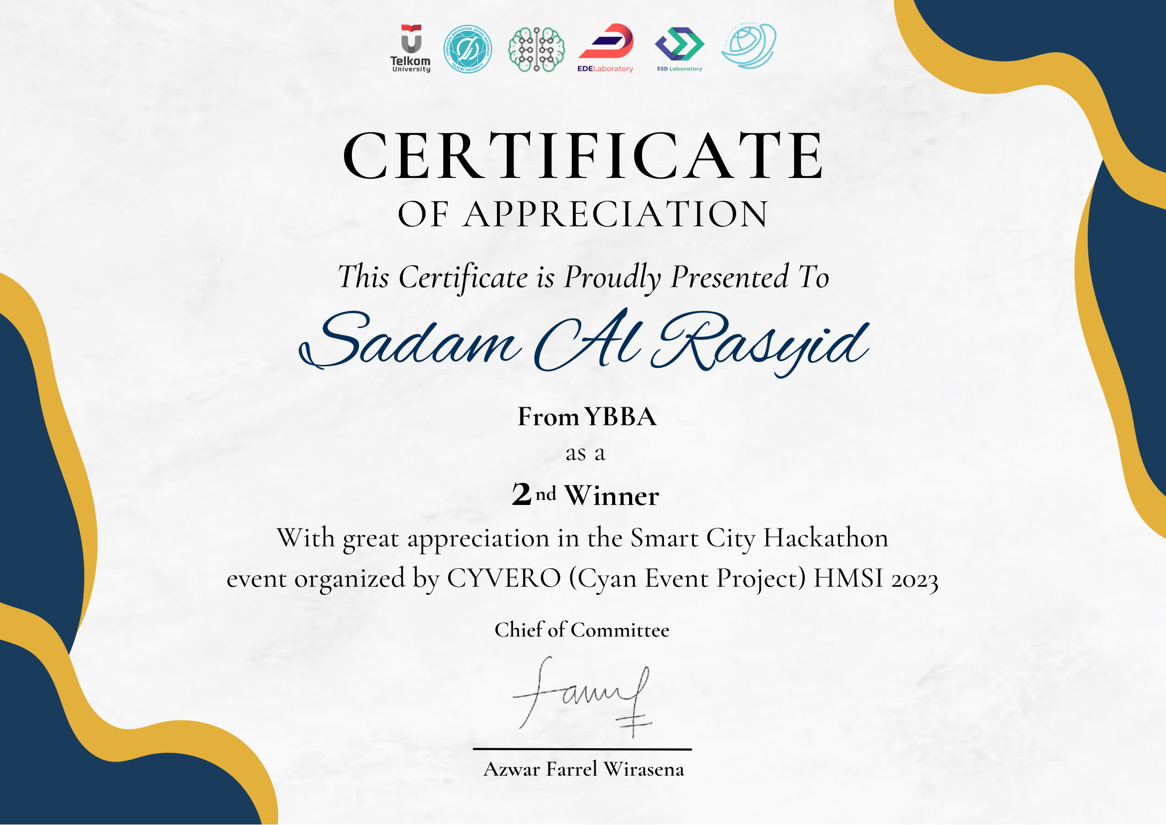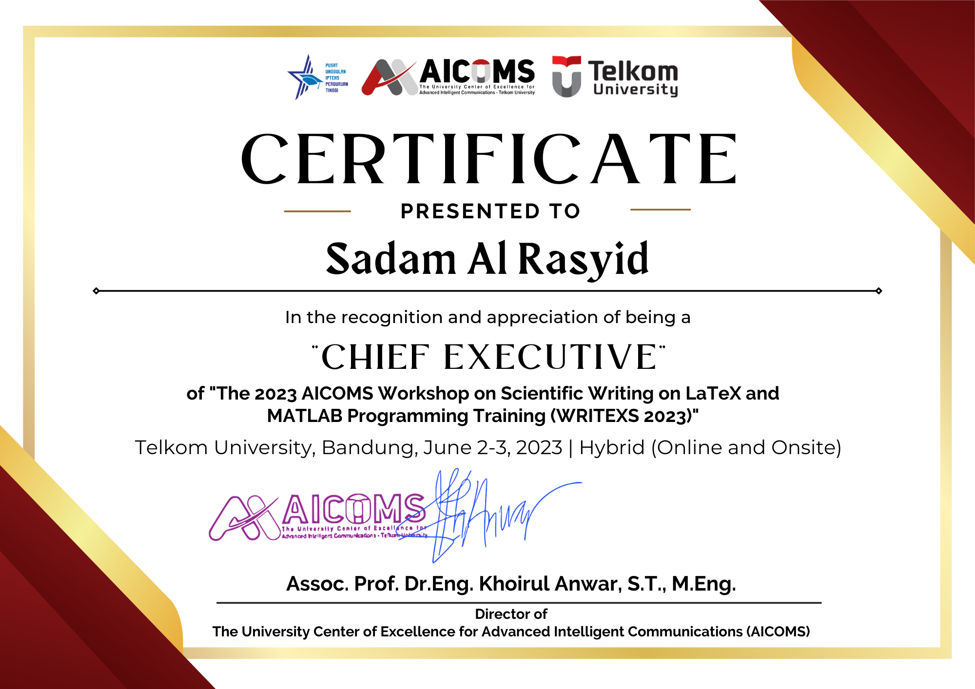 I am Sadam Al Rasyid, a Telecommunication Engineering student at Telkom University with a keen interest in cloud computing technology, web development, and Internet of Things (IoT). Actively engaged in expanding my knowledge in telecommunication, I am involved in various projects. My future ambition is to become an expert in the field of telecommunications and excel in constructing AIOT-based tools. I am driven by the goal of creating innovative solutions to enhance communication experiences. With dedication and hard work, I am confident in achieving my career aspirations and making a meaningful impact in the field.